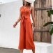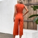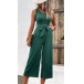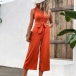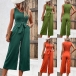 Fashion Solid Color Round Neck Sleeveless Buttoned Self-tie Jumpsuit