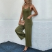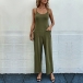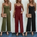 Fashion Solid Color Round neck Sleeveless Patch Pockets Wide-leg Jumpsuit
