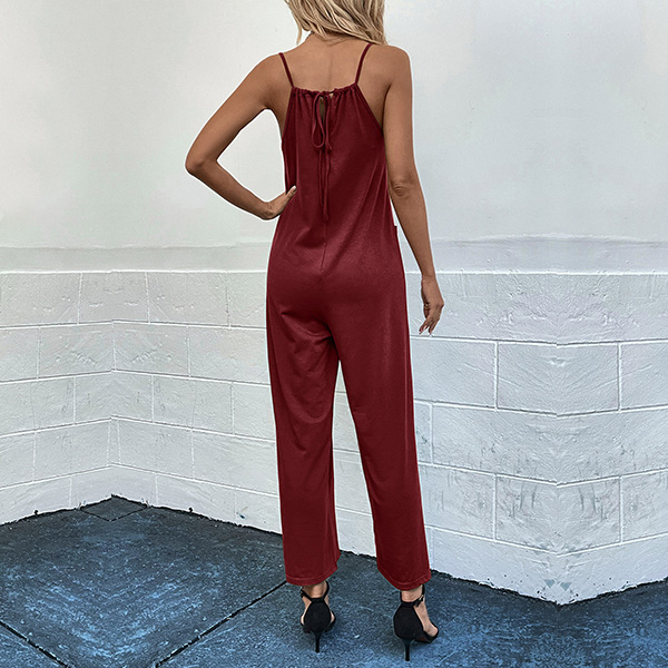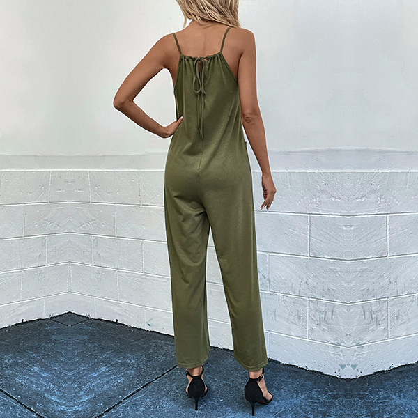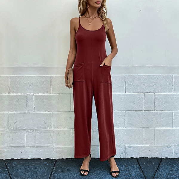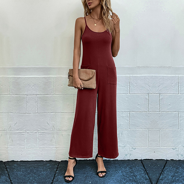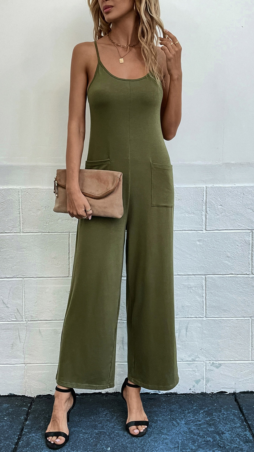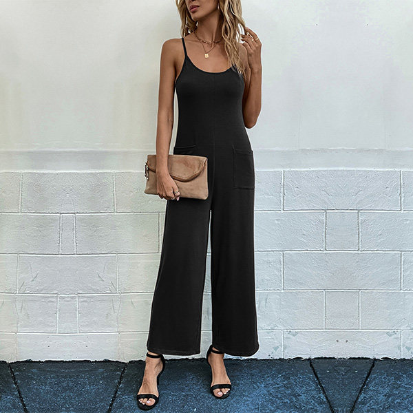 How about this casual jumpsuit? The round neck adds a classic touch to the overall design, while the sleeveless style keeps you cool and comfortable. The wide-leg cut gives the jumpsuit a relaxed and effortless vibe, perfect for day-to-day wear.