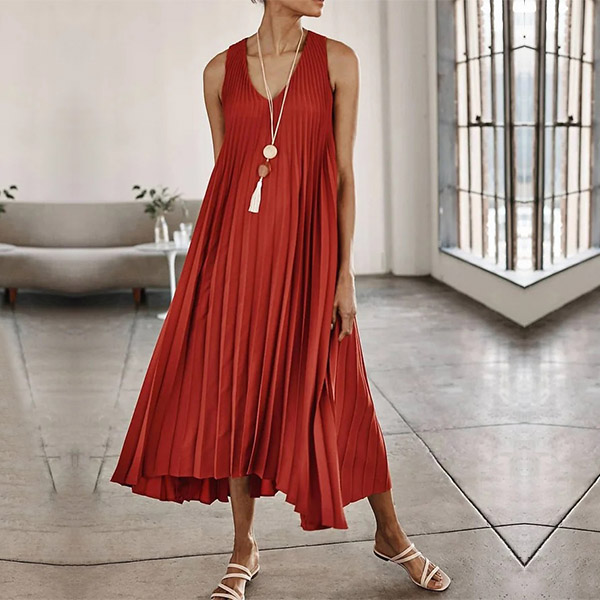 Fashion Solid Color Round Neck Sleeveless Pleated Dress
