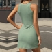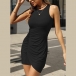 Fashion Solid Color Round Neck Sleeveless Ruched Bodycon Tank Dress