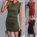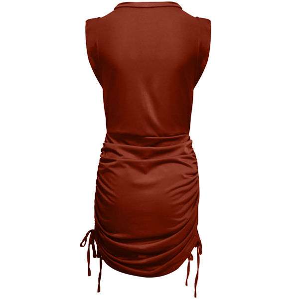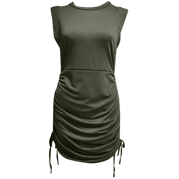 Fashion Solid Color Round Neck Sleeveless Side Drawstring Bodycon Dress