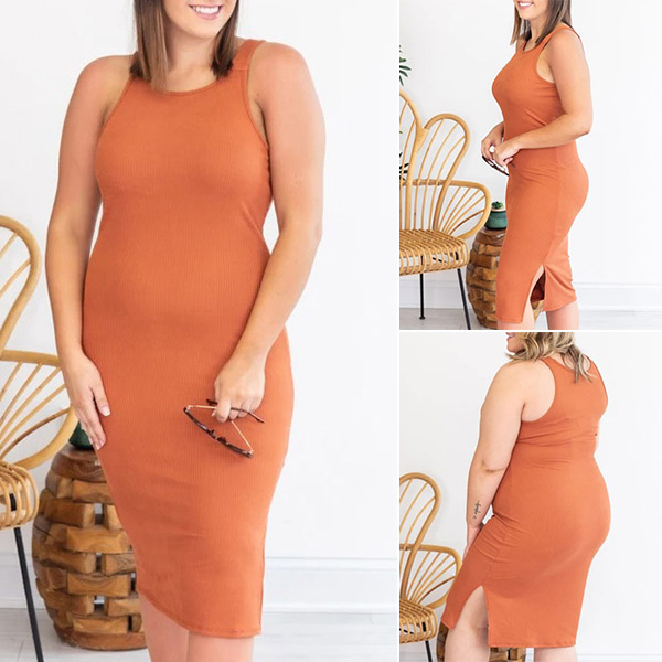 How about this dress?The tank style is perfect for summer, and the solid color is versatile and easy to wear. The figure-hugging silhouette is very flattering, and the slit up the side add some chic element to it. Wanna have a try?