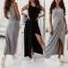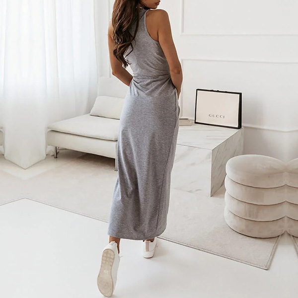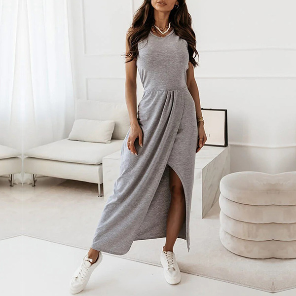 Fashion Solid Color Round Neck Sleeveless Slit Tank Dress