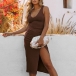 Fashion Solid Color Round Neck Sleeveless Slit Tank Dress