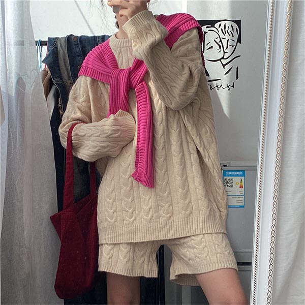 Your style can have an instant boost when you wear this two-piece set. Solid color style,including a long sleeve round neck loose sweater and a shorts,its soft and cozy fabric can give you a comfortable day. It is a good chance to update your style through this two-piece set.