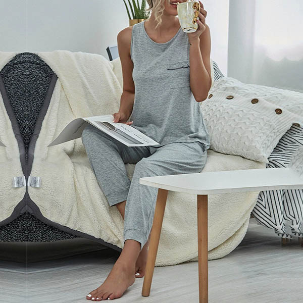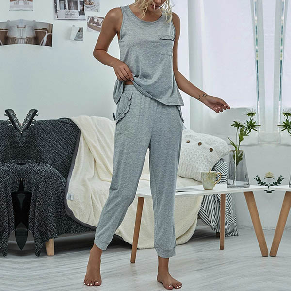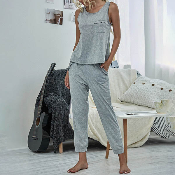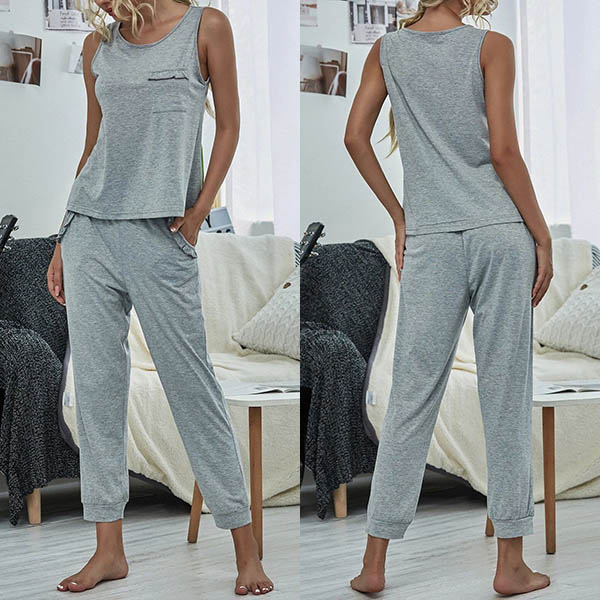 On your lazy days and casual weekends,this two-piece set can be your wise choice to stay comfy and relaxed. Solid color style,including a sleeveless round neck tank top and a pants,its soft and breathable fabric can ensure you a comfortable day. You can stay casual and cozy in this two-piece set.