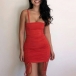 Fashion Solid Color Ruched Drawstring Bodycon Slip Dress