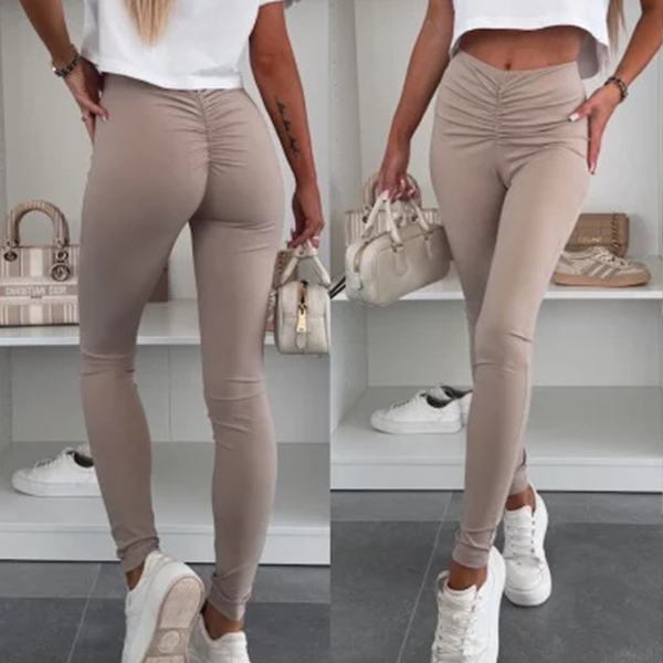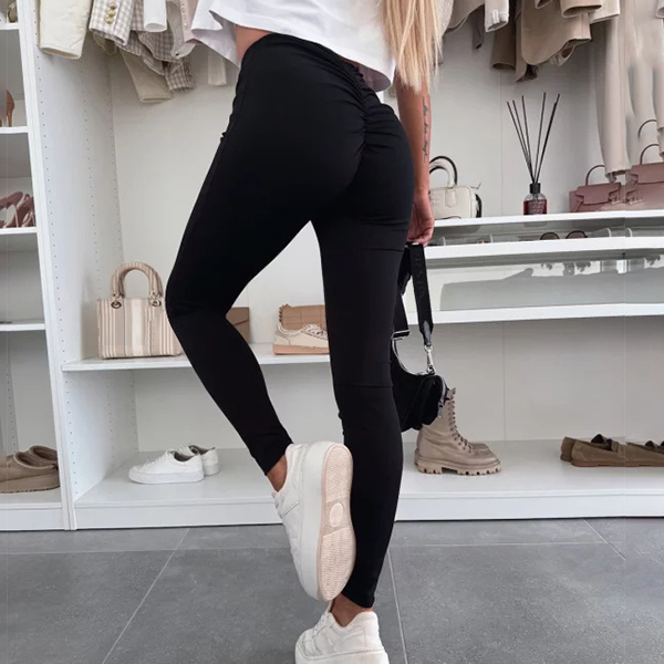Fashion Solid Color Ruched High-rise Skinny Pants for Workout