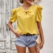 Fashion Solid Color Ruched Puff Short Sleeve Shirt