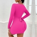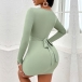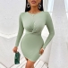 Fashion Solid Color Ruched Round Neck Long Sleeve Bodycon Dress
