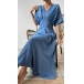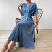 Crafted from a blend of cotton and linen, this dress is lightweight, breathable, and perfect for warm weather. It features front ruched design, V-neck, batwing short sleeve and high-rise design. It is a chic and versatile piece that combines style and comfort in a flattering silhouette.