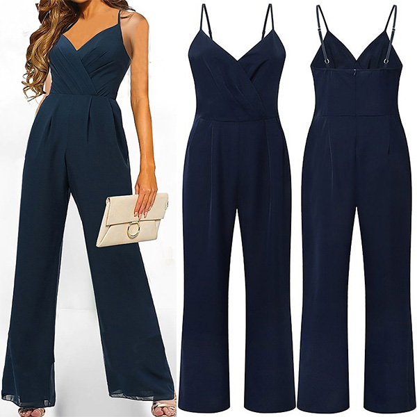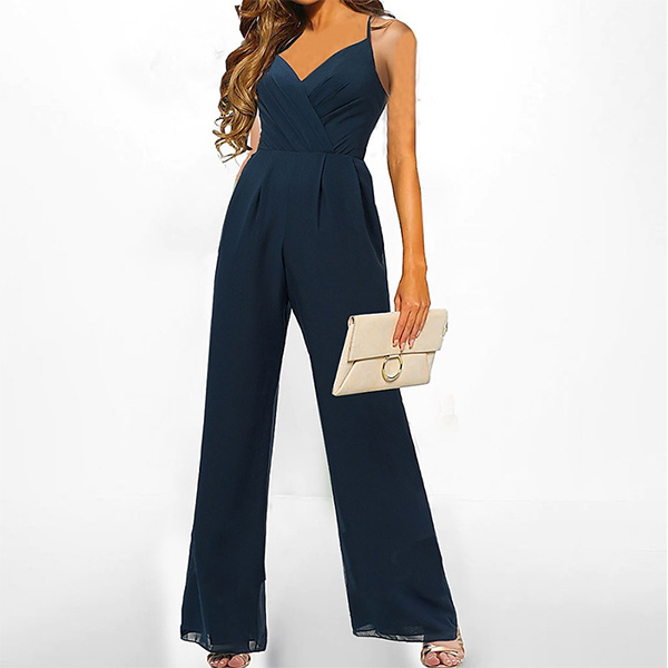 Step out in style and confidence with this chic jumpsuit that effortlessly combines comfort and fashion. The ruched detailing on the V-neck adds a touch of sophistication, while the high-rise waistline accentuates your curves. The wide-leg design gives a flowy and elegant silhouette, perfect for both casual and formal occasions.