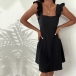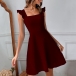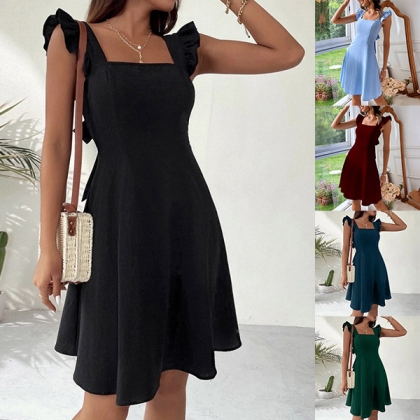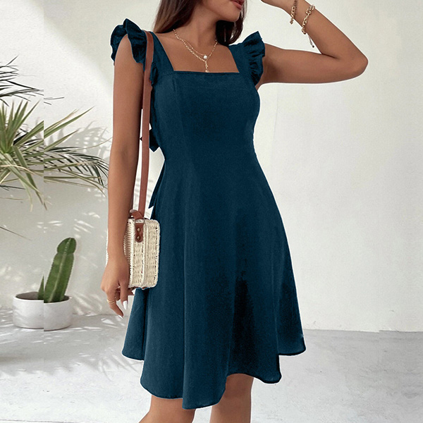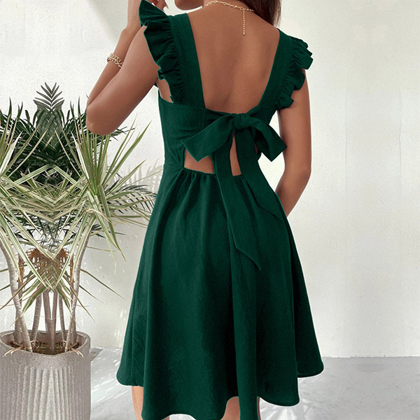 Fashion Solid Color Ruffle Backless Back-tie Dress