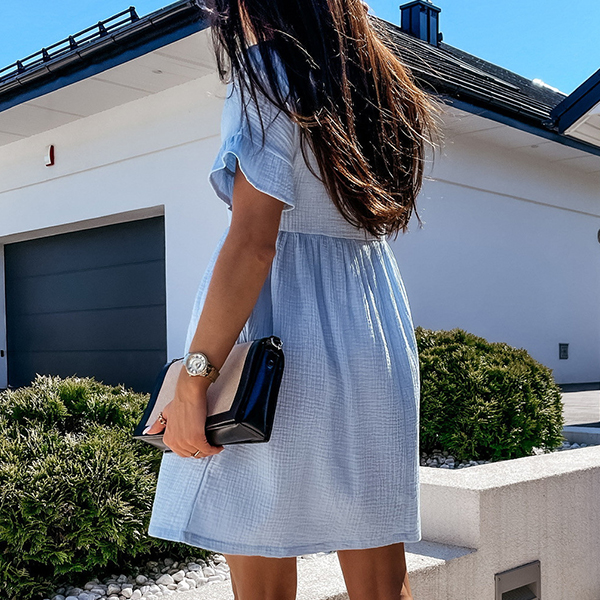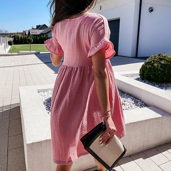 On your lazy days or casual weekends when you don't wanna take too much time for your daily matching,then you can just slip into this easy-to-wear dress. Solid color style,finished with short sleeve,round neck and ruffle cuff,this dress definitely can give you a cozy,sweet yet stylish daily style.