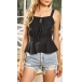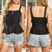 This solid color shirt is perfect for a day out! The ruffle hemline and sleeveless design are both stylish and comfortable, making it a great choice for a hot summer day. The front tie strap add some chic element to it. The shirt is made of a lightweight fabric that is breathable and easy to wear.