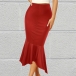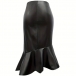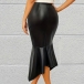 Fashion Solid Color Ruffle Hemline Slim-fit Artificial Leather PU Skirt
