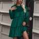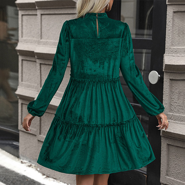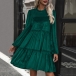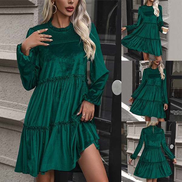 Fashion Solid Color Ruffle Round Neck Long Sleeve Velvet Tiered Dress