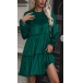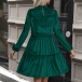 Crafted from luxurious velvet fabric, this dress offers a soft and sumptuous feel against your skin. The solid color adds a touch of sophistication, while the ruffle detailing on the round neckline brings a romantic and feminine touch. The tiered design of the dress adds volume and movement, creating a captivating and dynamic silhouette. Hope you like it.