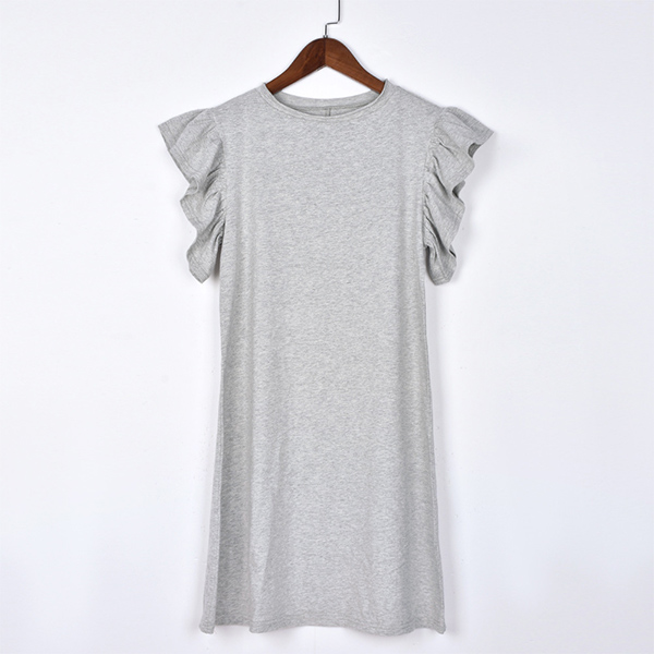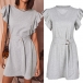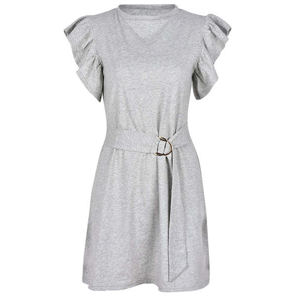 Fashion Solid Color Ruffle Short Sleeve Mini Dress with Belt