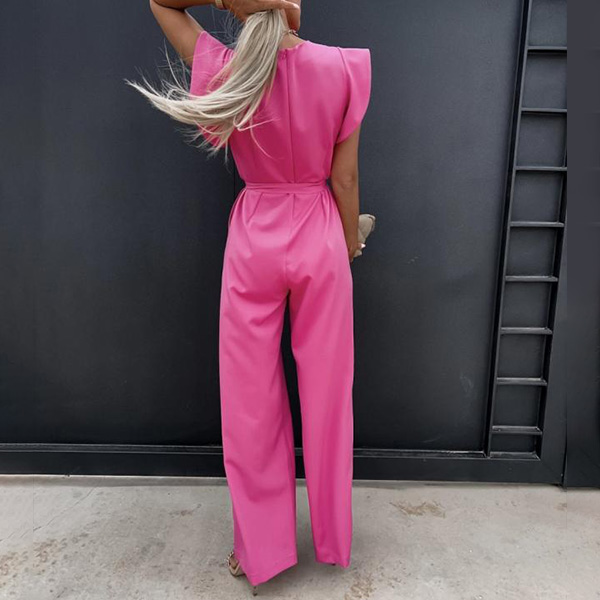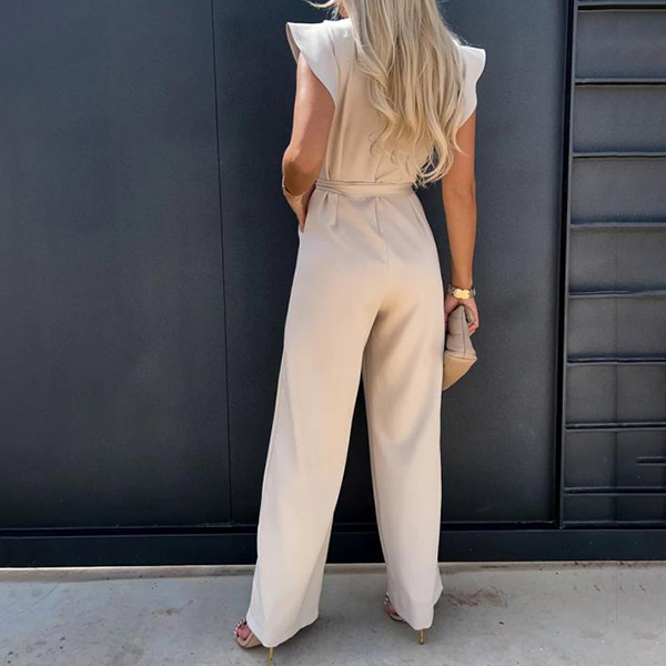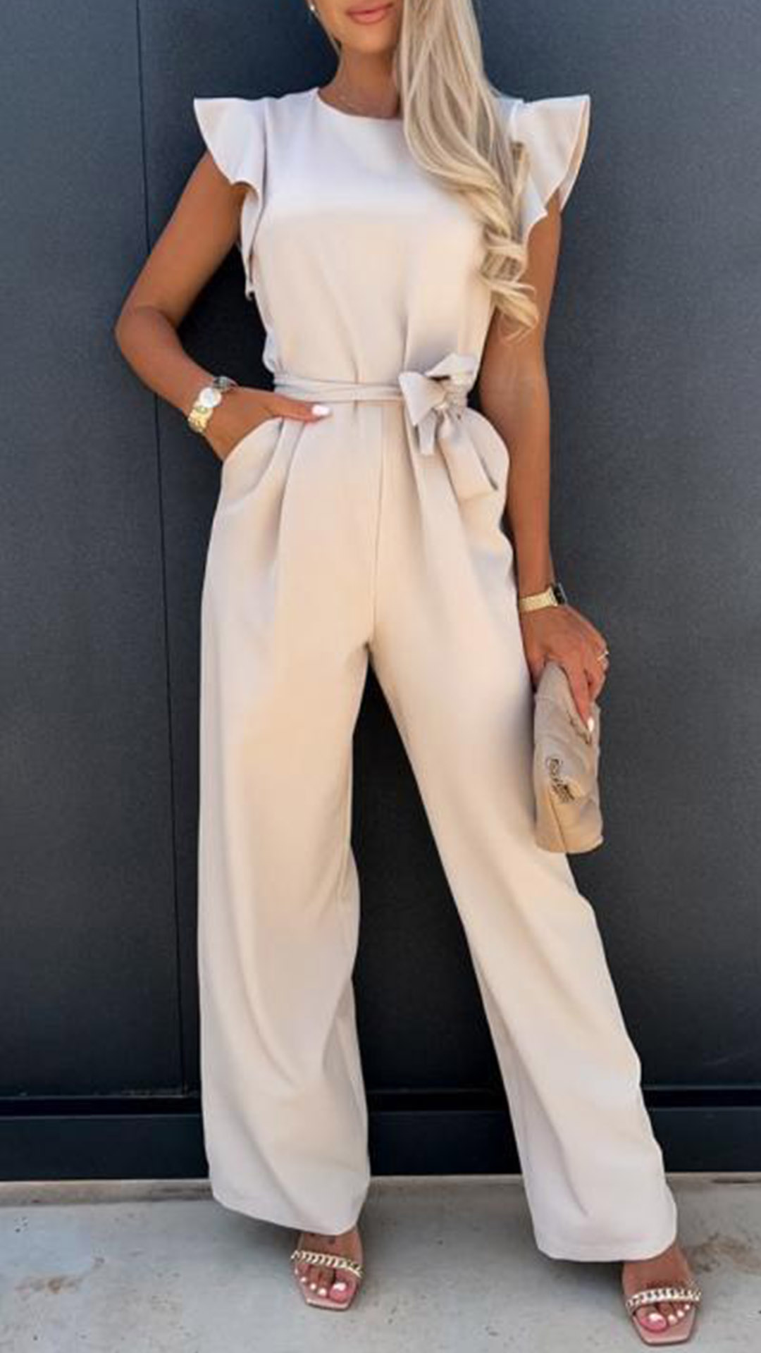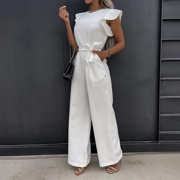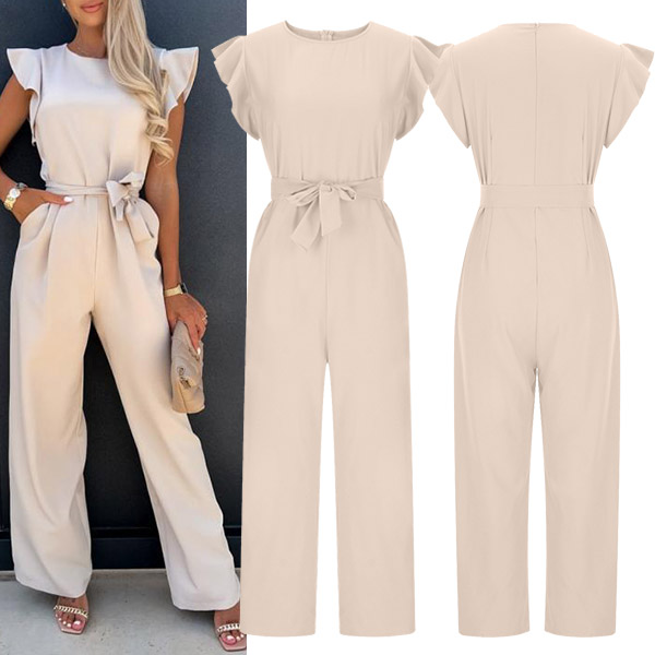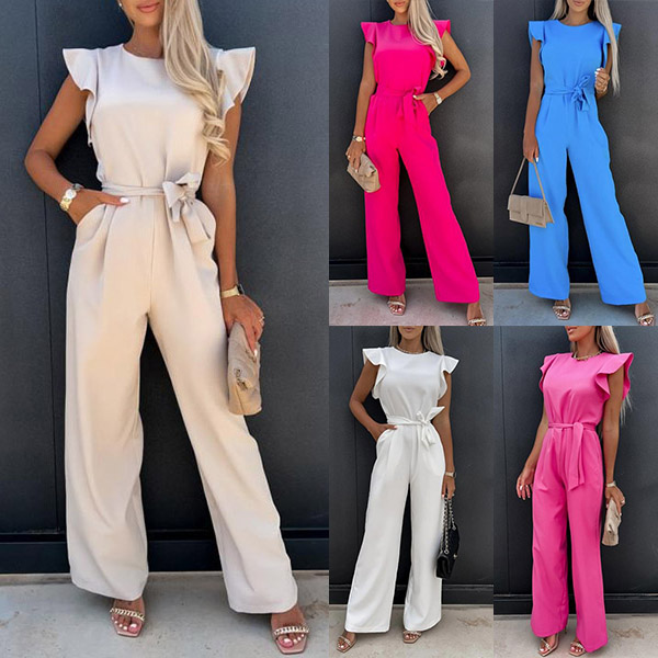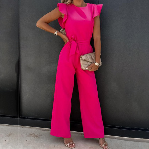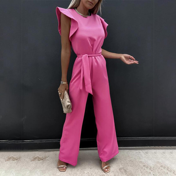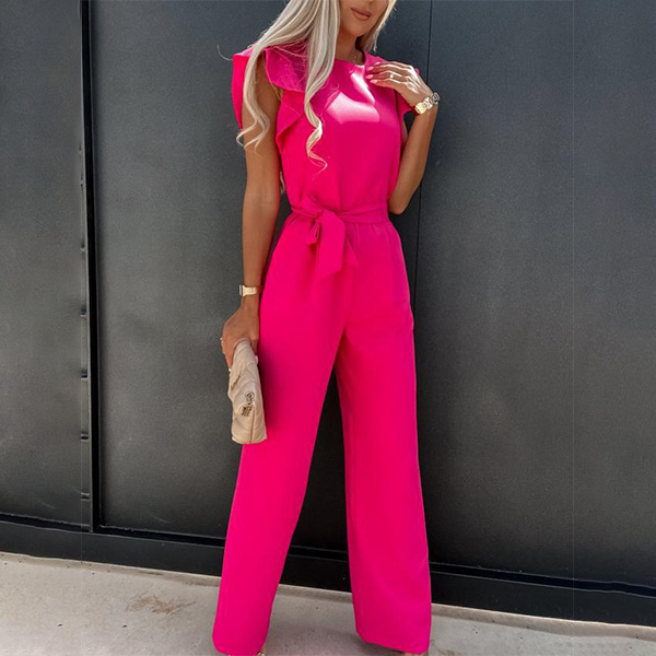 Looking for a chic and stylish jumpsuit that you can wear for any occasion? Look no further than this Self-tie Jumpsuit! This jumpsuit is made from a soft and comfortable material, and features a sleeveless design with ruffle detailing, and a wide-leg silhouette that is flattering for any body type. The self-tie waist gives you the perfect fit, and the solid color makes it easy to dress up or down. Whether you're wearing it for a day at the office or a night out on the town, this jumpsuit is sure to turn heads!