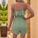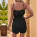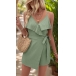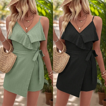 Fashion Solid Color Ruffle V-neck Self-tie Irregular Hemline Romper