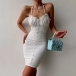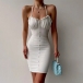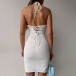 Fashion Solid Color Ruffled Buttoned Lace-up Halter Bodycon Dress