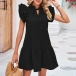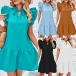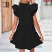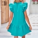 Fashion Solid Color Ruffled Cap Sleeve Self-tie Mini Dress