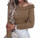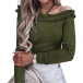 This Knitted Shirt is the perfect addition to your wardrobe. It features a ruffled off-the-shoulder neckline, halter straps, and a knitted construction. It's perfect for pairing with your favorite jeans or shorts for a casual look.