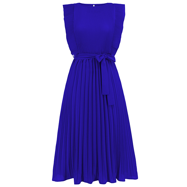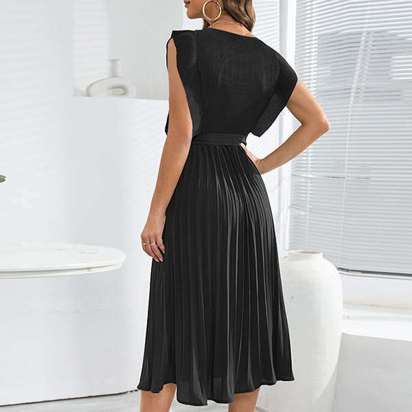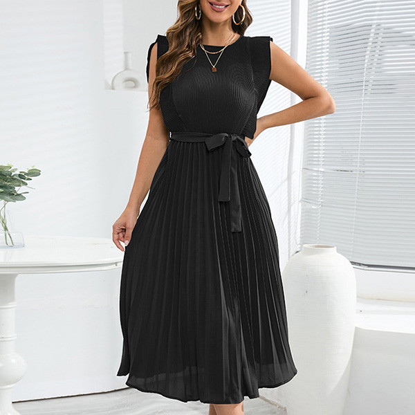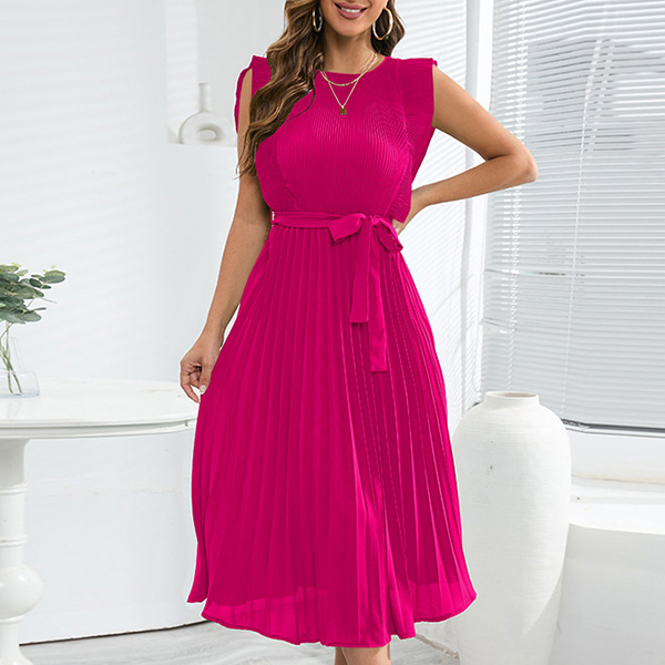 Fashion Solid Color Ruffled Self-tie Pleated Dress