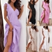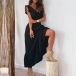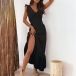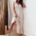 Fashion Solid Color Ruffled Sleeveless V-neck Midi Dress