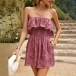 Fashion Solid Color Ruffled Strapless Jacquare Romper