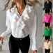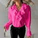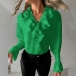 Fashion Solid Color Ruffled V-neck Long Sleeve Blouse
