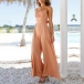 Fashion Solid Color Runched Back-tie Bowknot High Waist Wide-leg Cami Jumpsuit