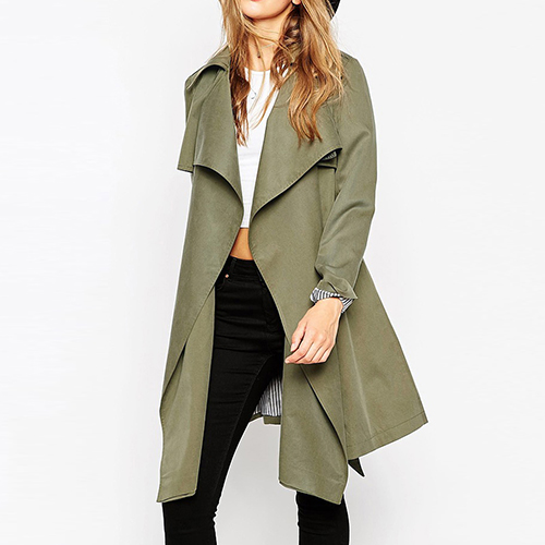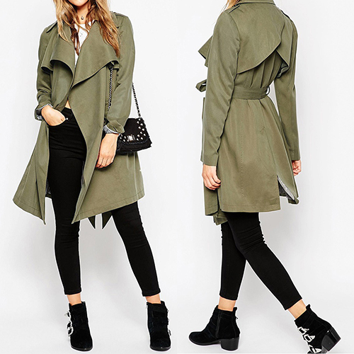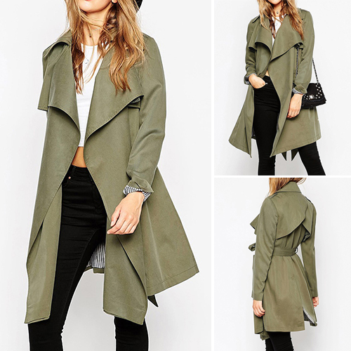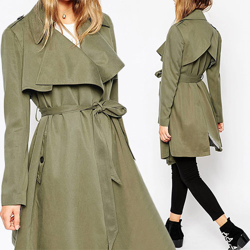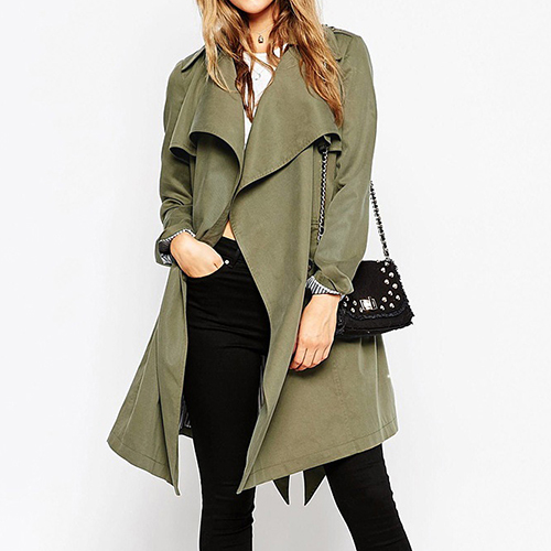 solid color, long sleeve and lapel design, the self-tie waist sash would further accentuate your stylish and