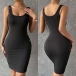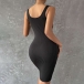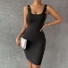 This dress features a classic scoop neckline and a ribbed bodycon silhouette that flatters your curves in all the right places. It is the ultimate combination of comfort and style.