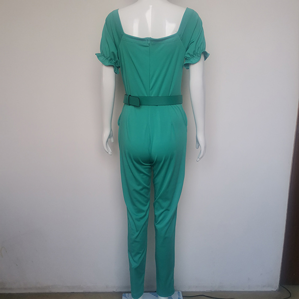 Fashion Solid Color Scoop Neck Short Sleeve Slim Fit Jumpsuit