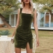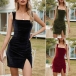 Looking for a stylish and comfortable dress for your next special occasion? Look no further than our Side Slit Bodycon Dress! Made from high-quality materials, square neckline and back, shoulder straps, mini length, side slit design, and a bodycon silhouette, this dress is perfect for any occasion and is sure to turn heads.