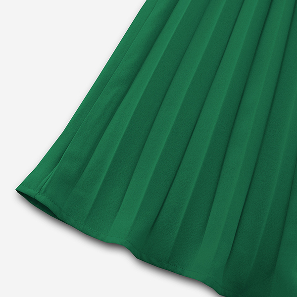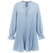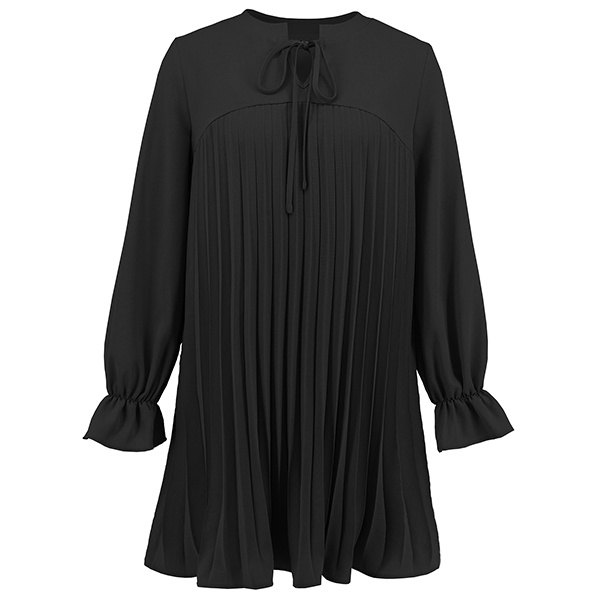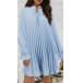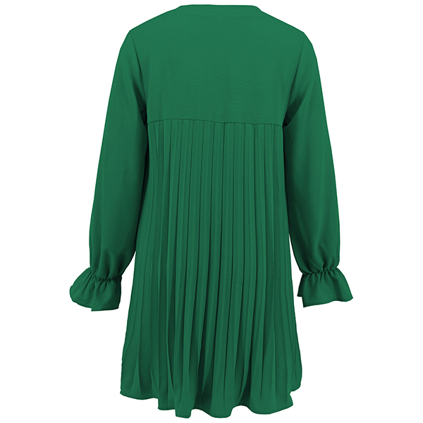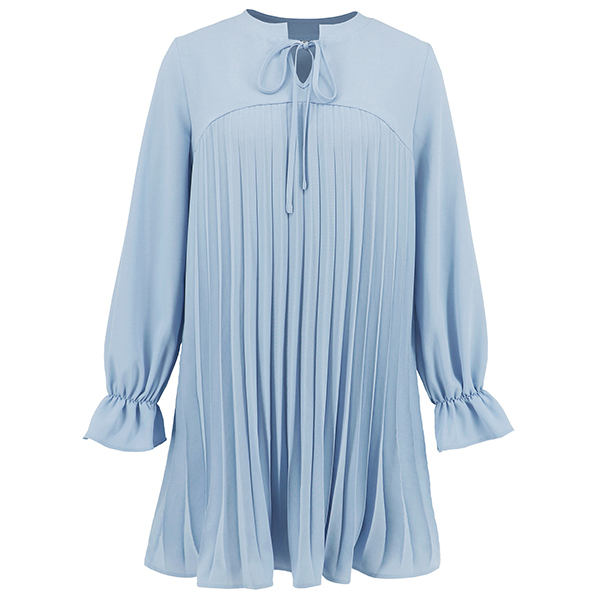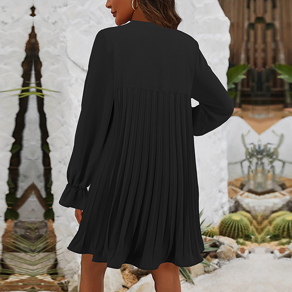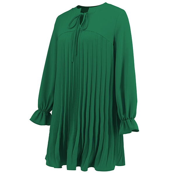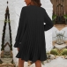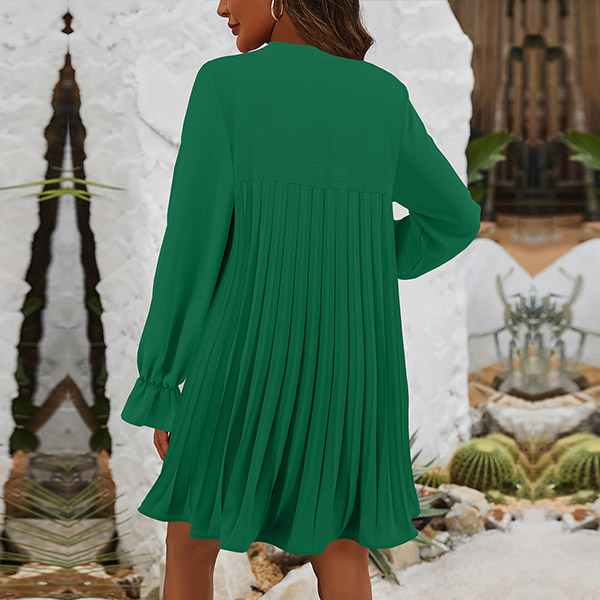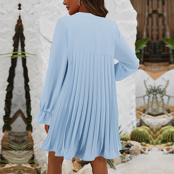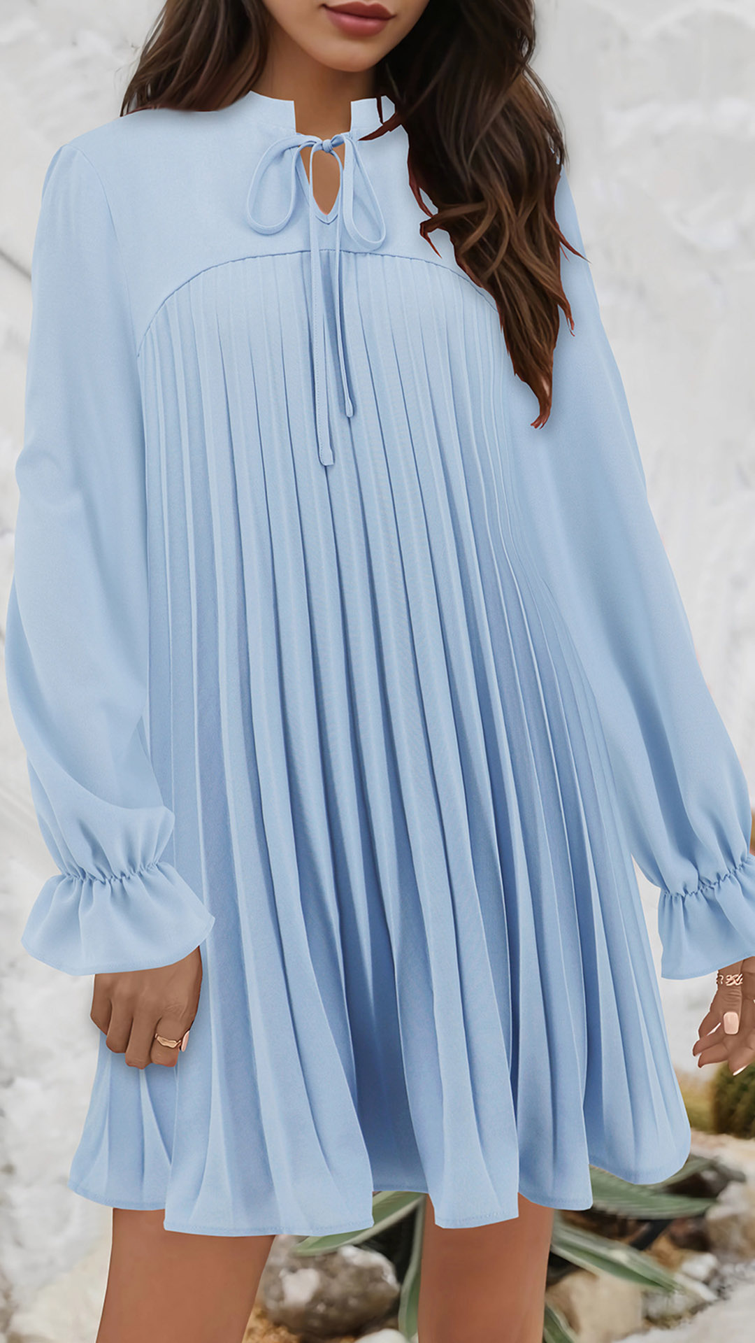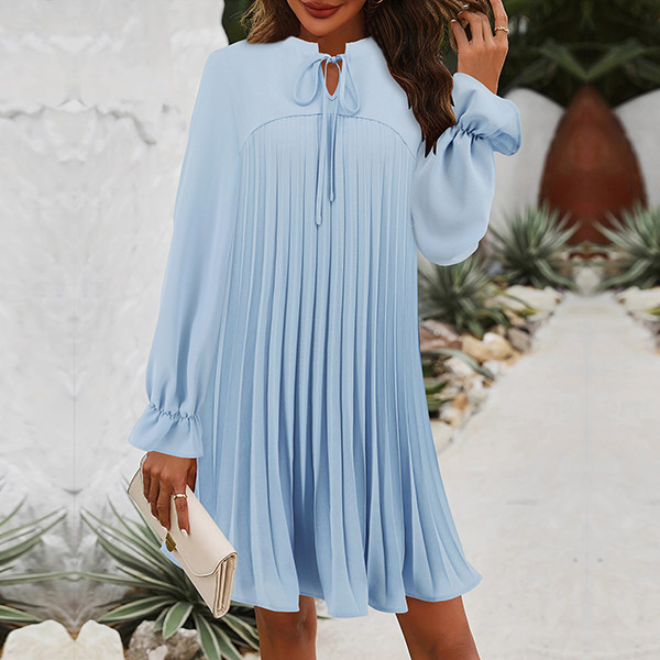 Fashion Solid Color Self-tie Crew Neck Long Sleeve Pleated Mini Dress