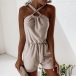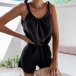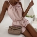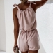 Fashion romper in solid color, featuring self-tie shoulder strap, elastic waistline, short sleeve, multi-color available.