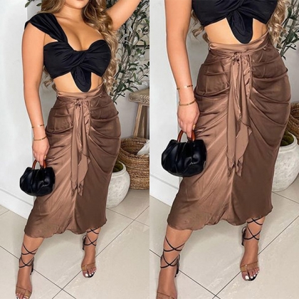 Fashion Solid Color Self-tie Ruched Skirt