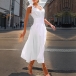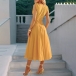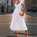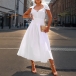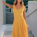 Fashion Solid Color Self-tie Shoulder V-neck Sleeveless High-rise Midi Dress