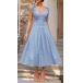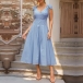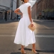This is a chic and sophisticated dress that exudes elegance and charm. The self-tie shoulder detail adds a touch of versatility and allows you to adjust the fit to your liking, creating a personalized and stylish look. The high-rise waistline creates a flattering and defined silhouette, emphasizing your curves in all the right places. Pair it with a clutch bag and dainty jewelry to complete the outfit and make a lasting impression.