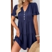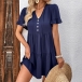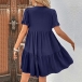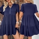 Fashion Solid Color Self-tie V-neck Buttoned Short Sleeve Tiered Dress