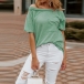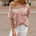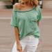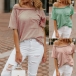Fashion Solid Color Short Sleeve Boat Neck Loose T-shirt