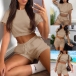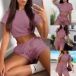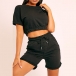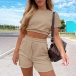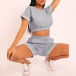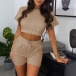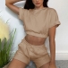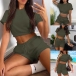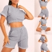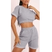 For the hot summer days,this two-piece set can be your wise choice. Solid color style,including a short sleeve round neck crop top and a shorts,this two-piece set definitely can showcase your perfect and slender figure. Just slip into this two-piece set to enjoy your summer season.