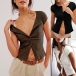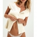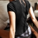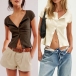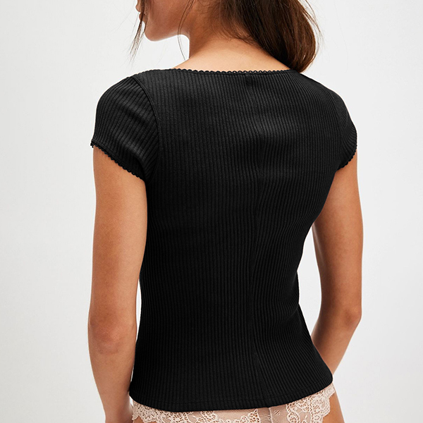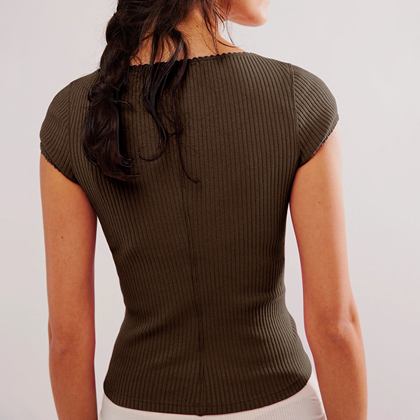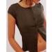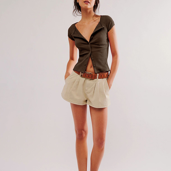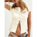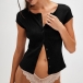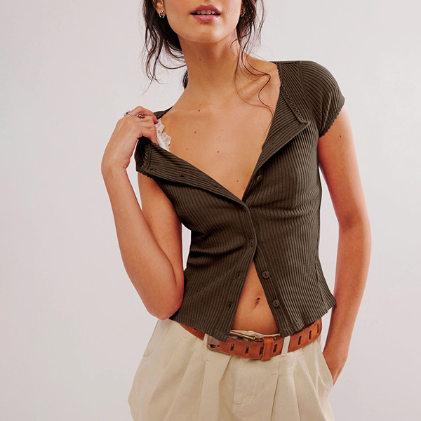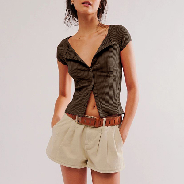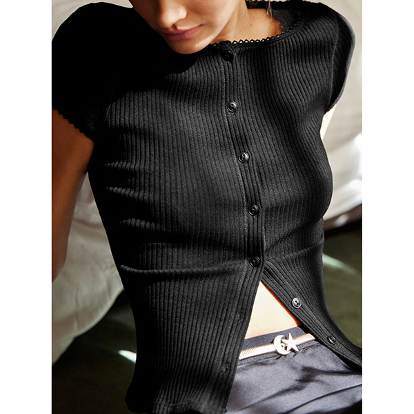 Fashion Solid Color Short Sleeve Front Button Ribbed Shirt