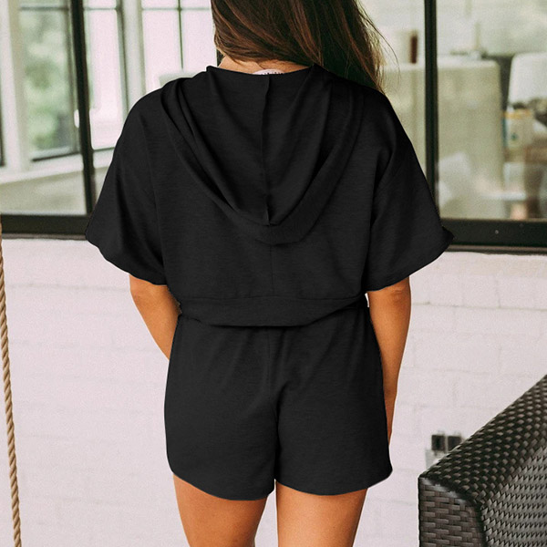 Injecting some chic and flirty appeal to your weekend look is easy when dressing up with this two-piece set. Boasts a solid color,including a short sleeve hooded crop top and a drawstring high waist shorts,this two-piece set is a good way to maintain your style and personality.