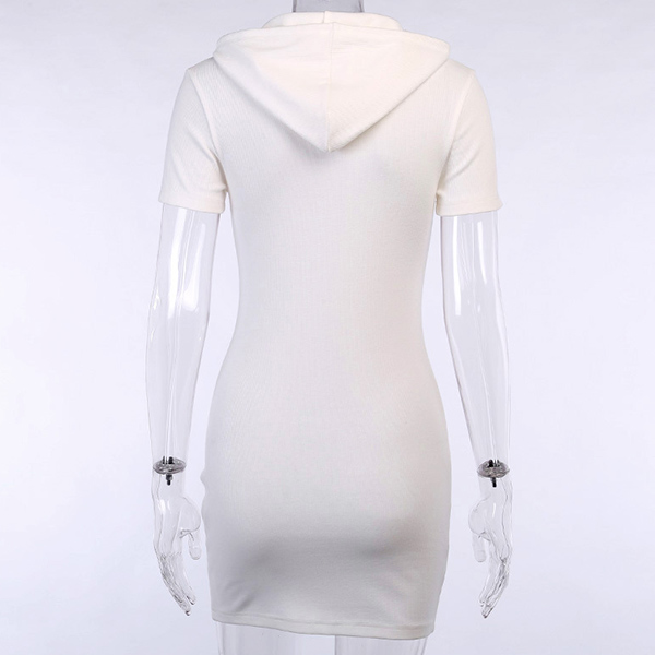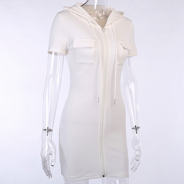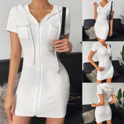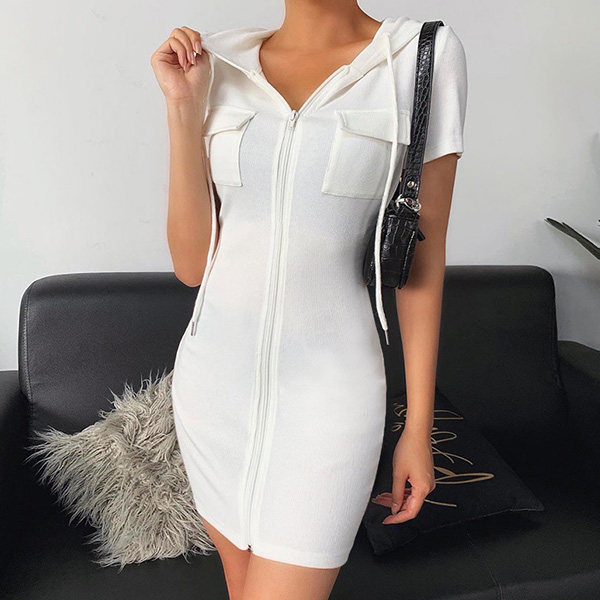 As for a simple,laid-back yet stylish weekend style,you can just slip into this dress. It boasts a solid color,finished with short sleeve,hooded silhouette and front-zipper design,this piece can showcase your slender figure while it showcases your chic style and personality.
