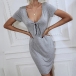 Fashion Solid Color Short Sleeve Knotted V-neck Dress